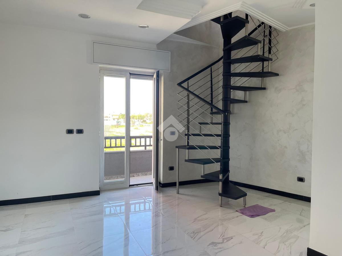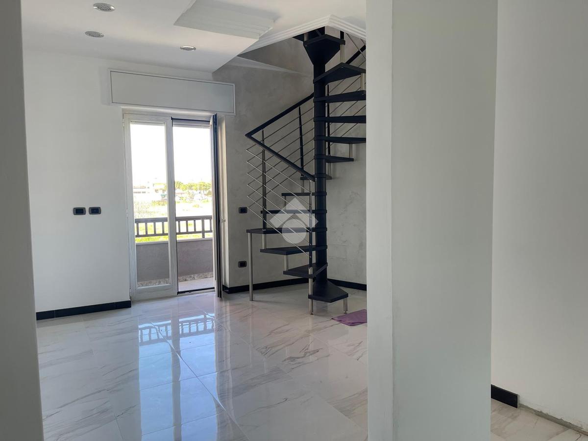 Una suggestiva scala a chiocciola conduce al piano superiore, dove troviamo un ulteriore vano con bagno, ideale come terza camera, studio privato o area hobby, con accesso diretto al grande terrazzo a livello: uno spazio esclusivo perfetto per momenti di relax, cene all’aperto o per creare una splendida zona solarium.