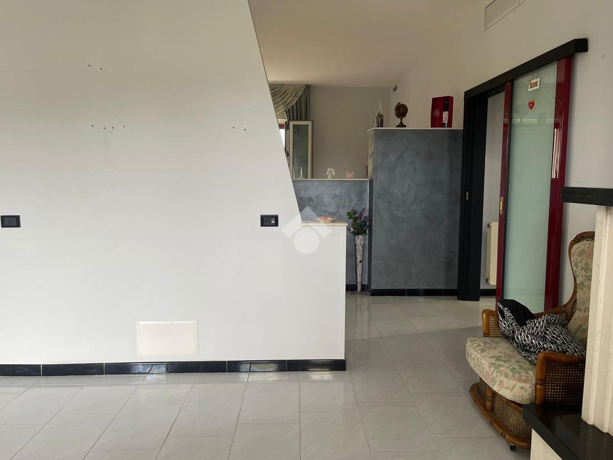 Dalla veranda principale si accede a una luminosa e accogliente zona living, ben distribuita e valorizzata da un muro divisorio che separa armoniosamente l’area relax dalla zona tinello e dal cucinotto, quest’ultimo con uscita diretta sul balcone affacciato sul retro della proprietà.